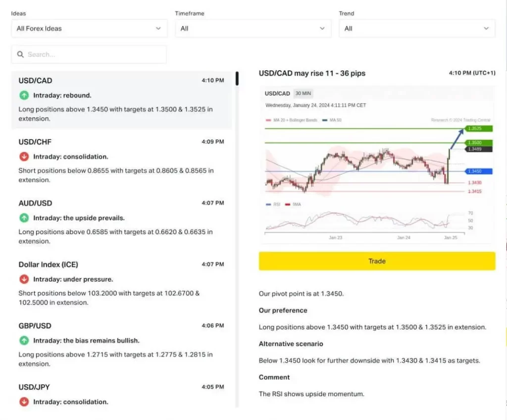 Exness提供了从trading Central获取交易信号的途径,这是一个综合分析工具,整合了各种方法来帮助交易者有效地制定策略和规划交易。